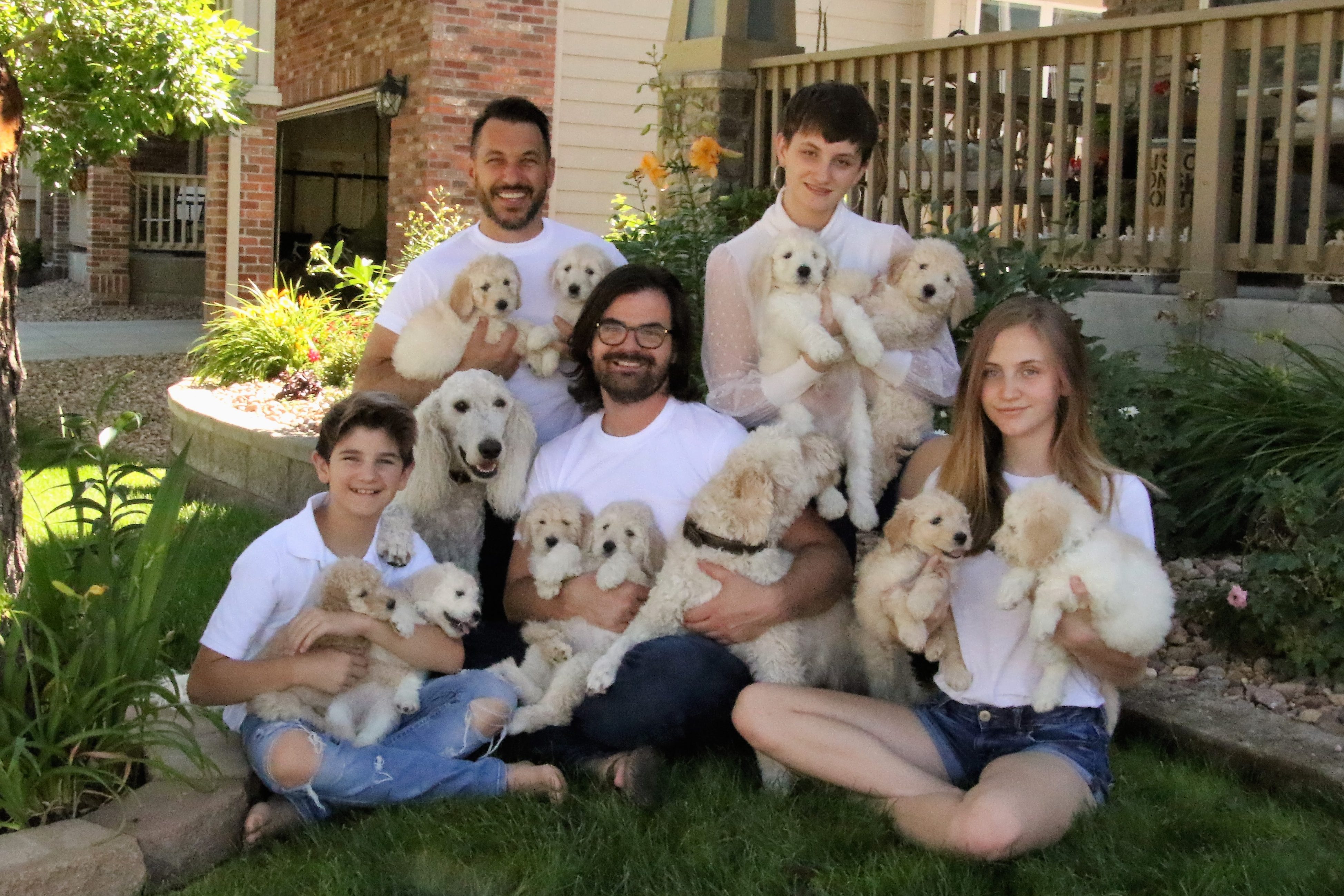 Our family members are creative, lively, and value kindness. In our home, we love cooking, dancing, hugging, video games, beautiful design, art, plants, music, and occasionally sleeping. Our doodles – affectionately dubbed our “poopies” – fit in wonderfully. They’re particularly good at exuding the love we prioritize as a value.