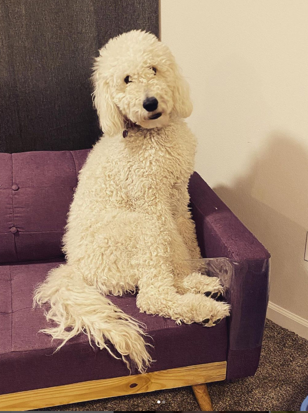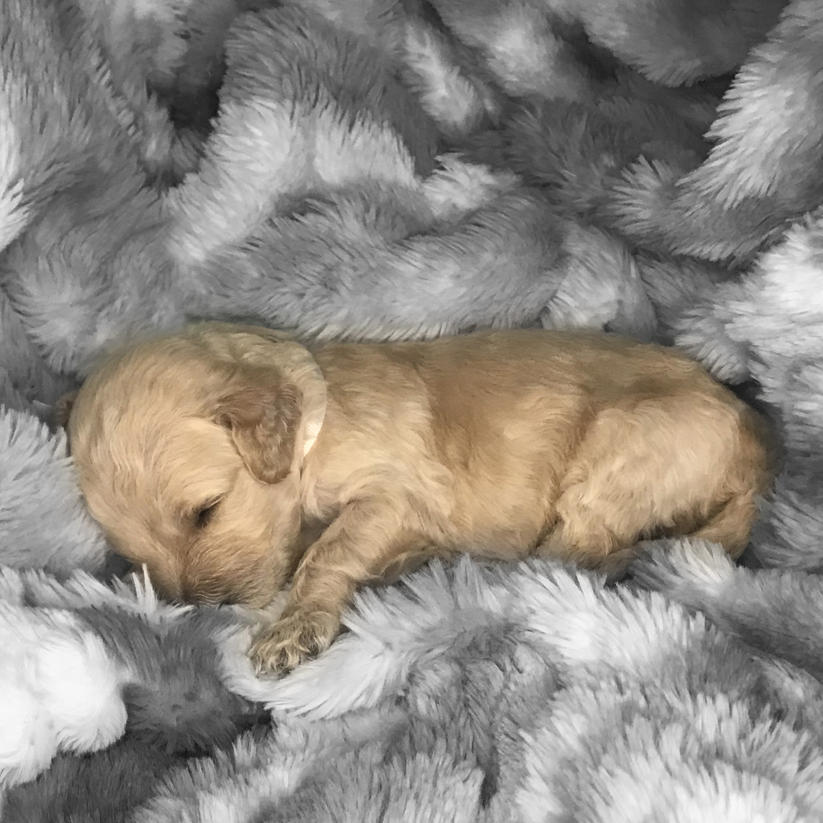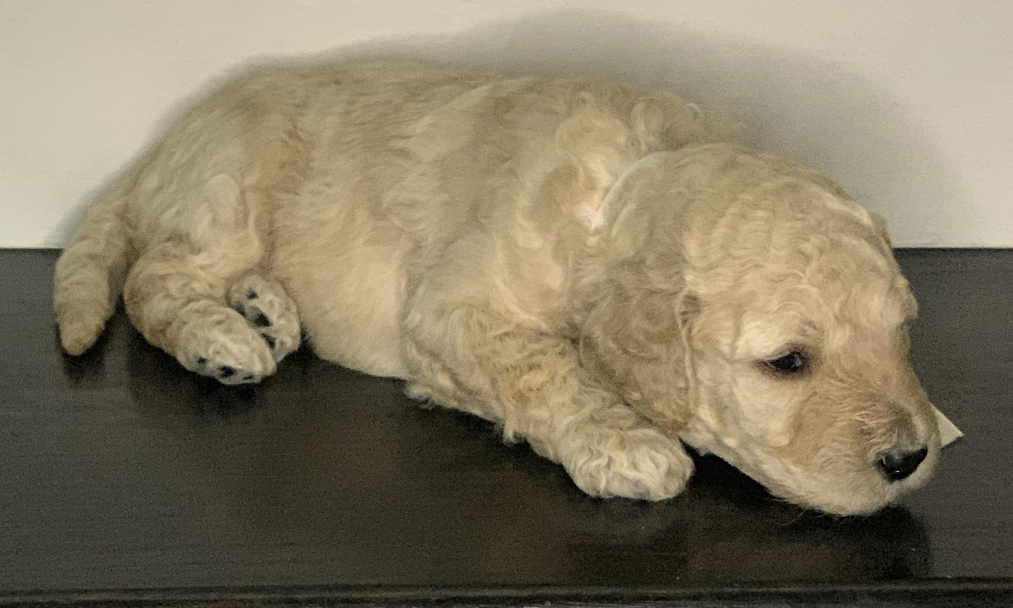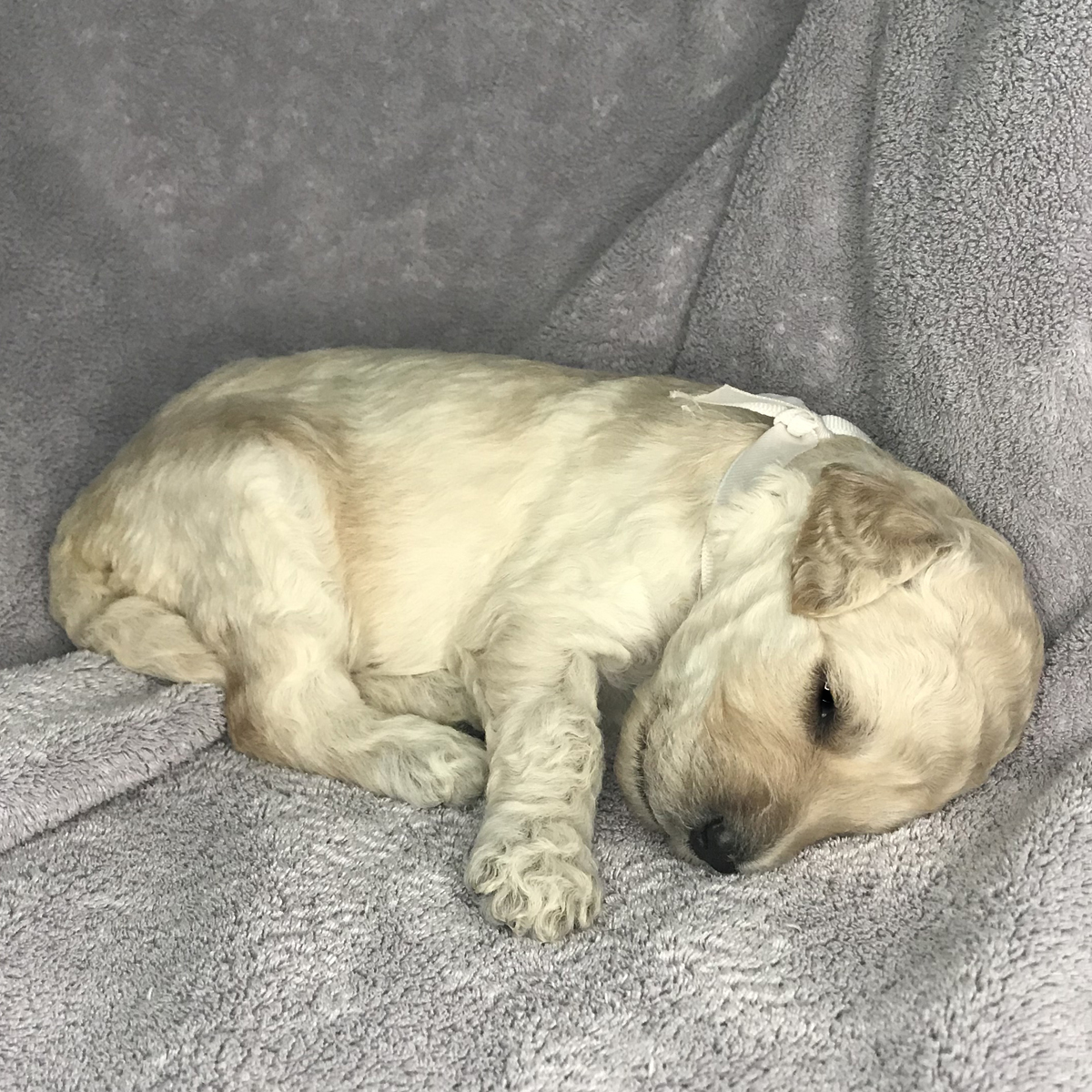 Rocket just won’t quit growing. As one of the puppies with the whitest fur, he has primarily mild curls, thus far. It must be his love of sleeping that helps him keep getting bigger.