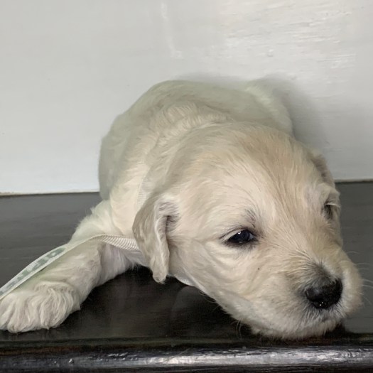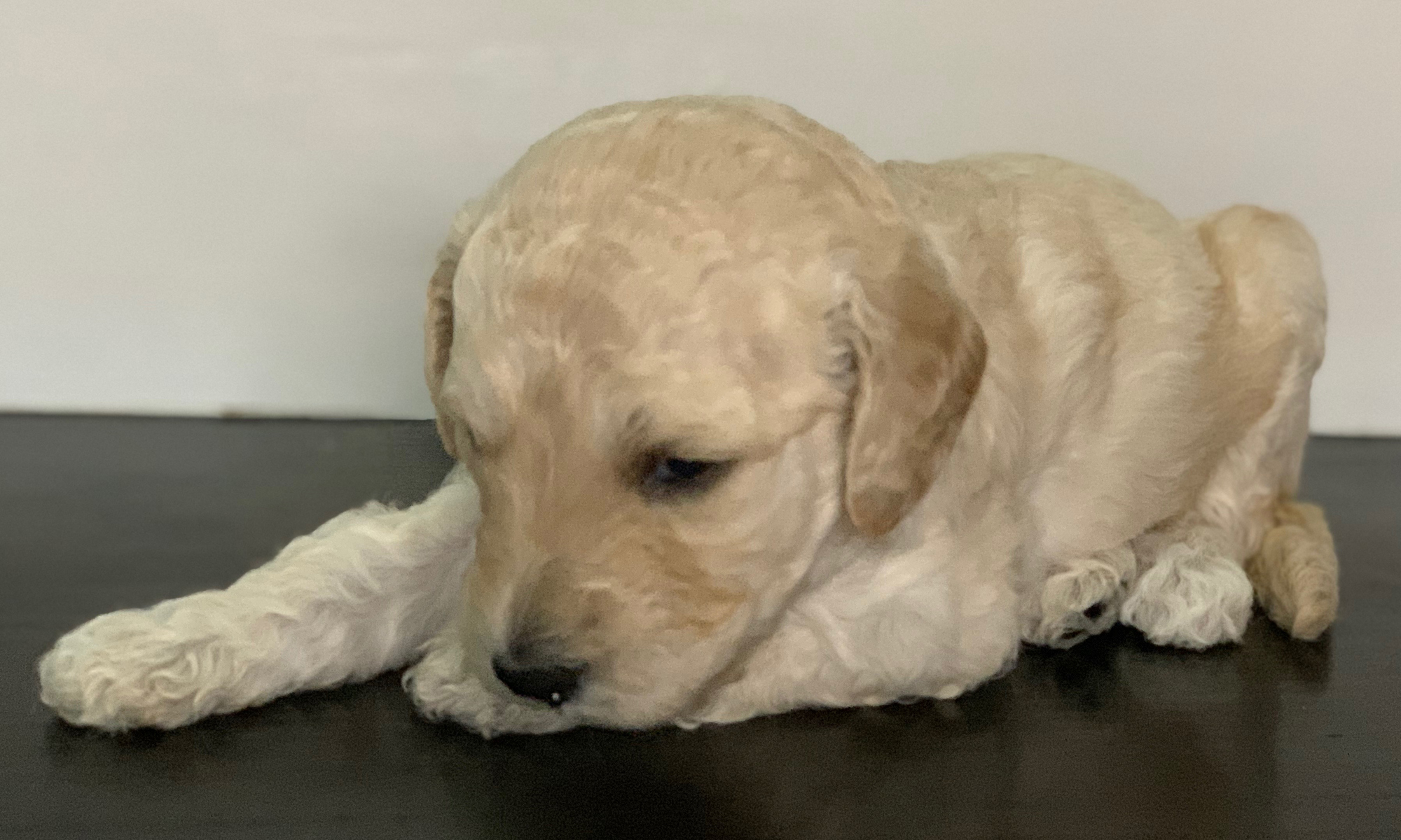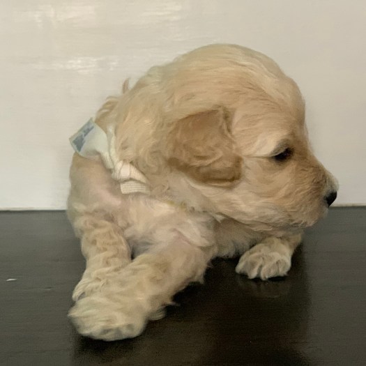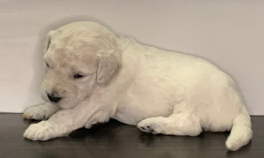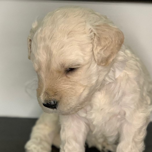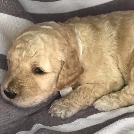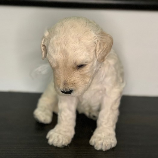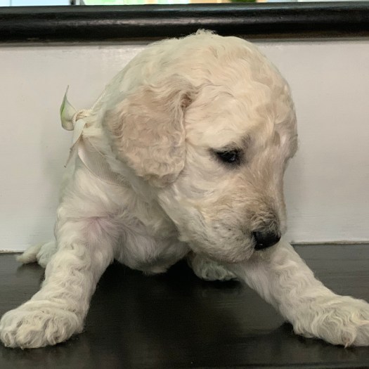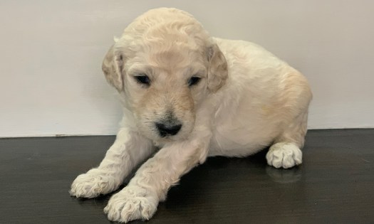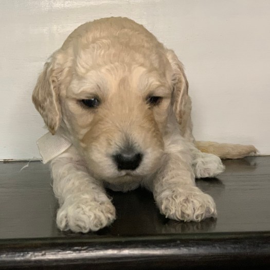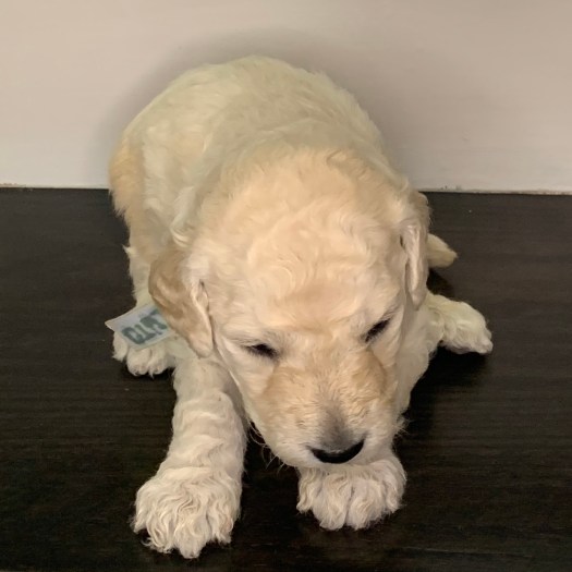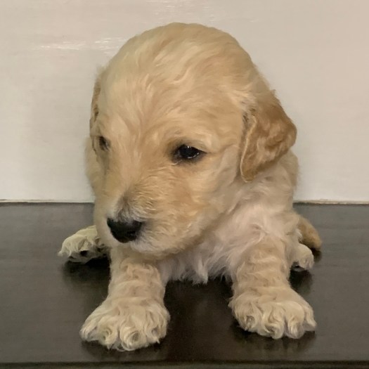 Phoebe is currently the largest female in the litter. She’s also one of the most golden colored, with gorgeous curls, and big eyes. With such complete cuteness, she’s especially talented at inspiring those who see her to hold her close, and give her lots of kisses.