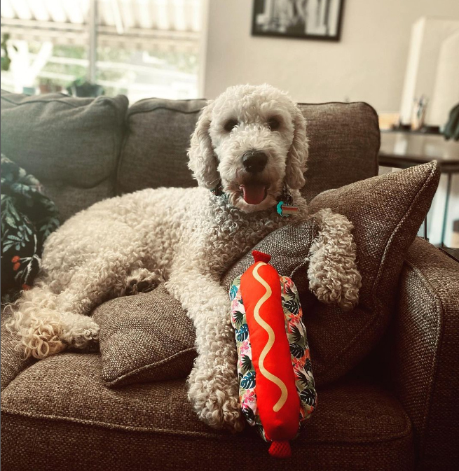 Pickles favors his mother’s coloring, with noticeable waves in his lightly golden fur. Though he was the last of the litter to be found by his family, he’s obviously in for a lifetime of serious family loves!