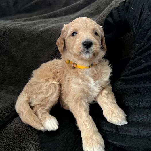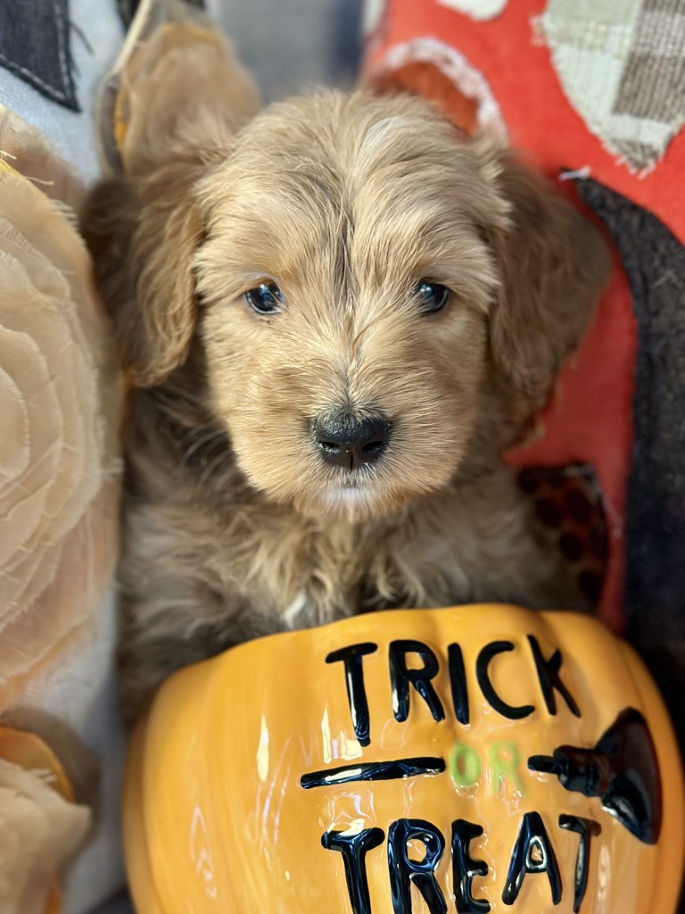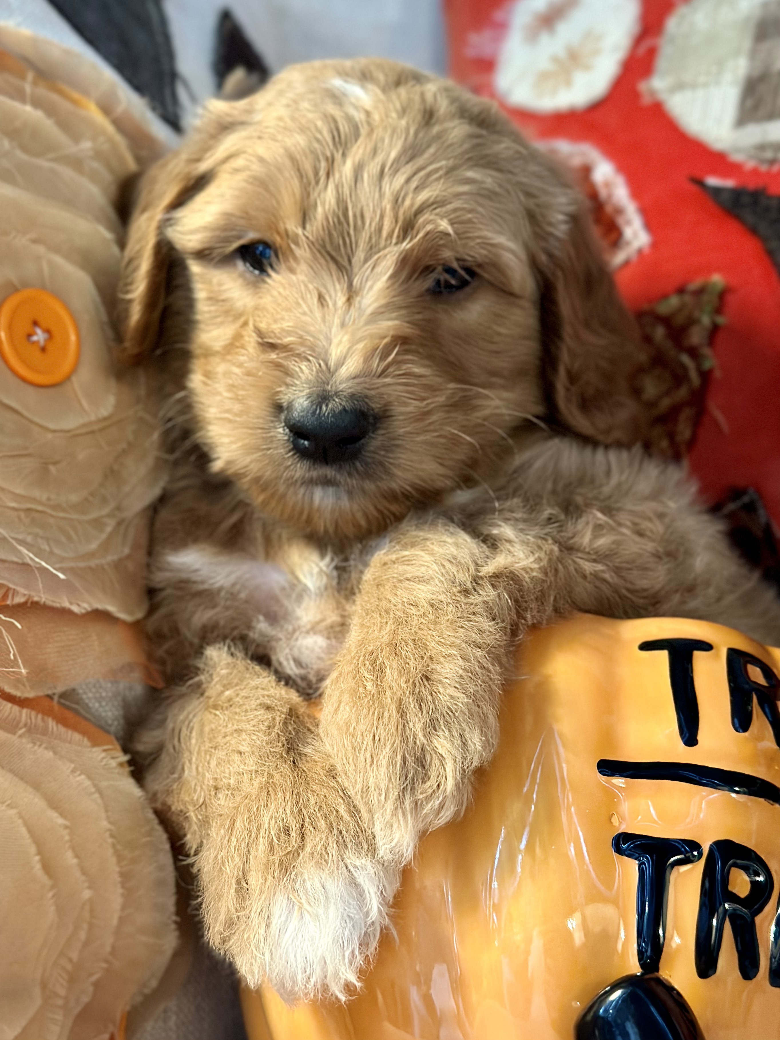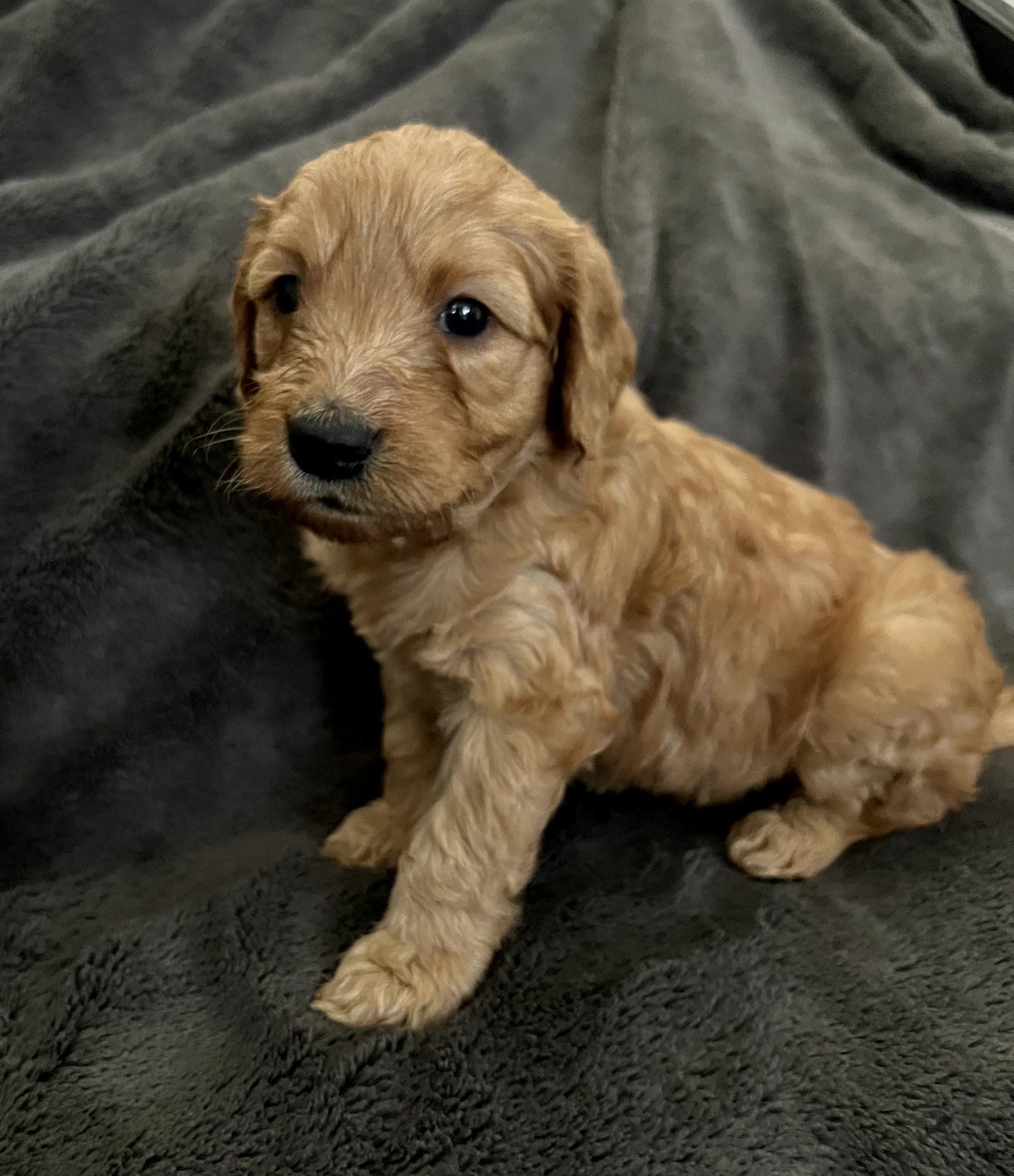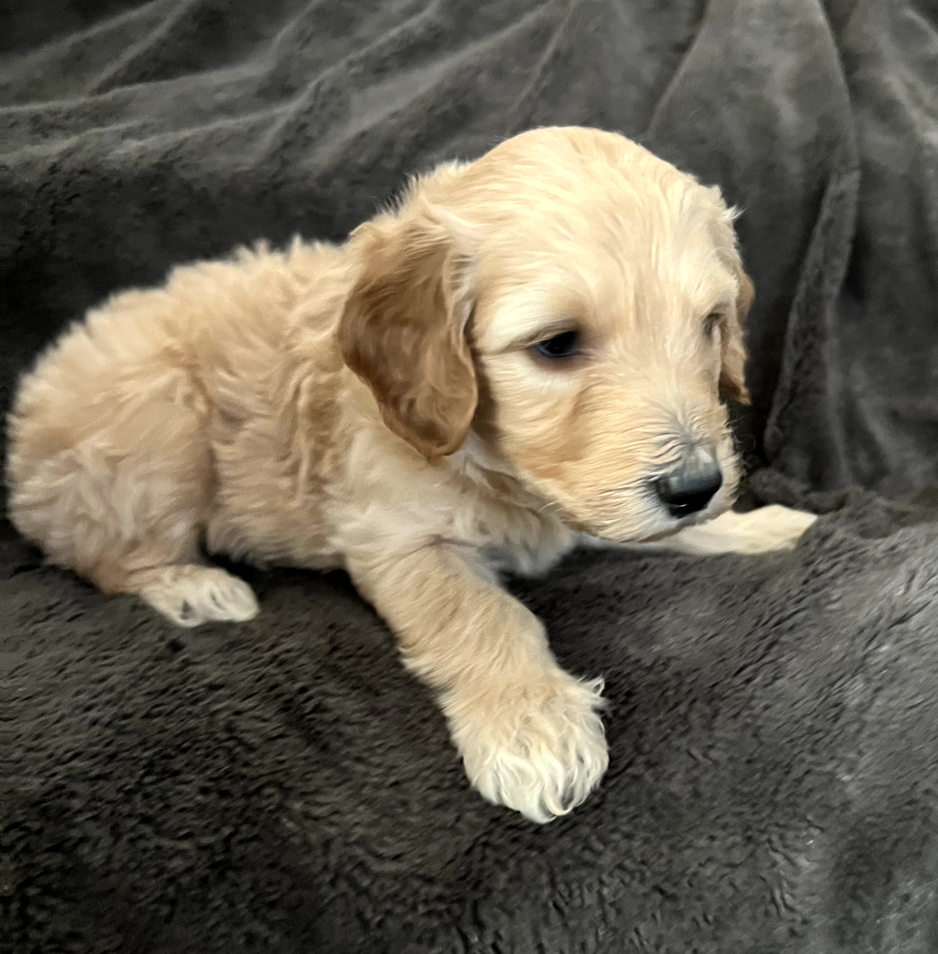 Artemis has some of the curliest golden brown fur of the bunch, so far. He’s rather chill in nature, and has been known to give some real heart-melting kisses when held close. He’s also emerged as a hearty eater, and loves actively playing with his siblings.